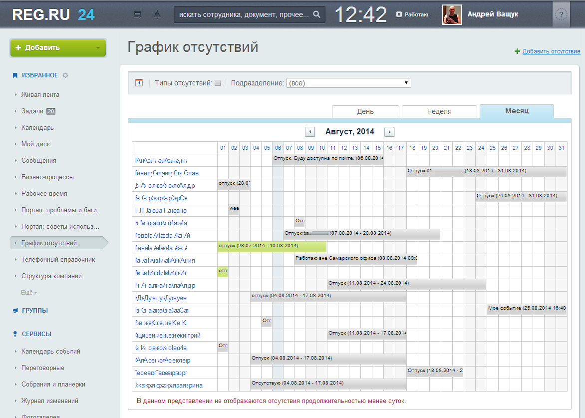 Вторым крупным блоком интеграции стало создание единой базы корпоративных документов. Гибкая настройка доступа обеспечивает высокий уровень безопасного хранения и использования корпоративных данных, а расположение основного инструмента для совместной работы с файлами «Битрикс24.Диск» на собственных серверах REG.RU позволяет использовать его максимально эффективно. В завершении первого этапа интеграции были запущены основные HR-инструменты корпоративного портала: структура компании, индивидуальные карточки сотрудников, календарь отпусков.