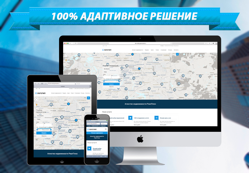 Компания DAsystems разработала готовое решение для создания сайта агентства недвижимости. Решение обладает адаптивным дизайном, представлено в восьми цветовых схемах. Реализован удобный механизм смены логотипа и телефона компании за 5 минут, интерактивная карта объектов недвижимости с умным фильтром по поиску объектов, несколько вариантов отображения карточек объектов и мн.др.