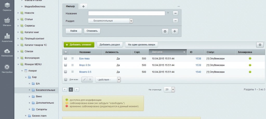 Решение, разработанное компанией «Золотой код», выполняет выгрузку позиций товаров в инфоблок rkeeper (по стандартным настройкам) с сохранением дерева расположения товаров в R-Keeper. Подходит для редакций «Малый бизнес», «Эксперт» и «Бизнес».