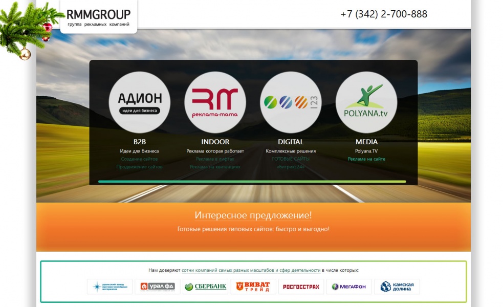 Решение, разработанное RMMGROUP, позволит установить праздничное украшение для сайта. Вы можете выбрать украшение к 9 мая, 8 марта или Новому году, а также загрузить собственное изображение.
