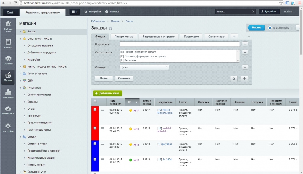 Игорь Кобыща (компания Яkus) разработал комплекс инструментов, расширяющий стандартный функционал работы с заказами. В модуль входят следующие инструменты: копирование заказа в административной панели сайта, повторная отправка информации по заказу, а также документов клиенту на почту, размытие стоимости доставки по товарам и др.