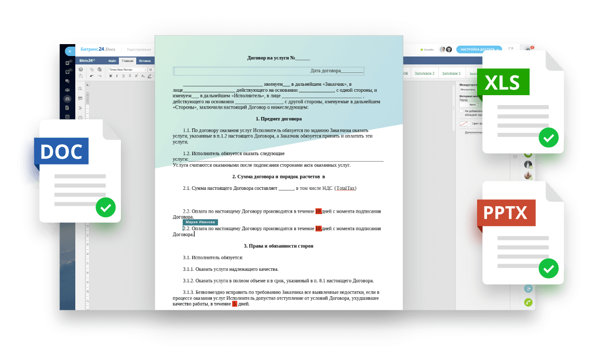 Онлайн-редактор для совместной работы с документами теперь внутри Битрикс24! Документы можно править вместе с коллегами прямо в задачах, чатах, новостной ленте и во время видеозвонка. Вы увидите все комментарии и правки в реальном времени.