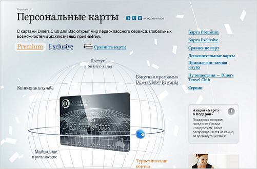 Diners Club International: сайт легендарной карты мира от «Банка Русский Стандарт» на платформе «1С-Битрикс»