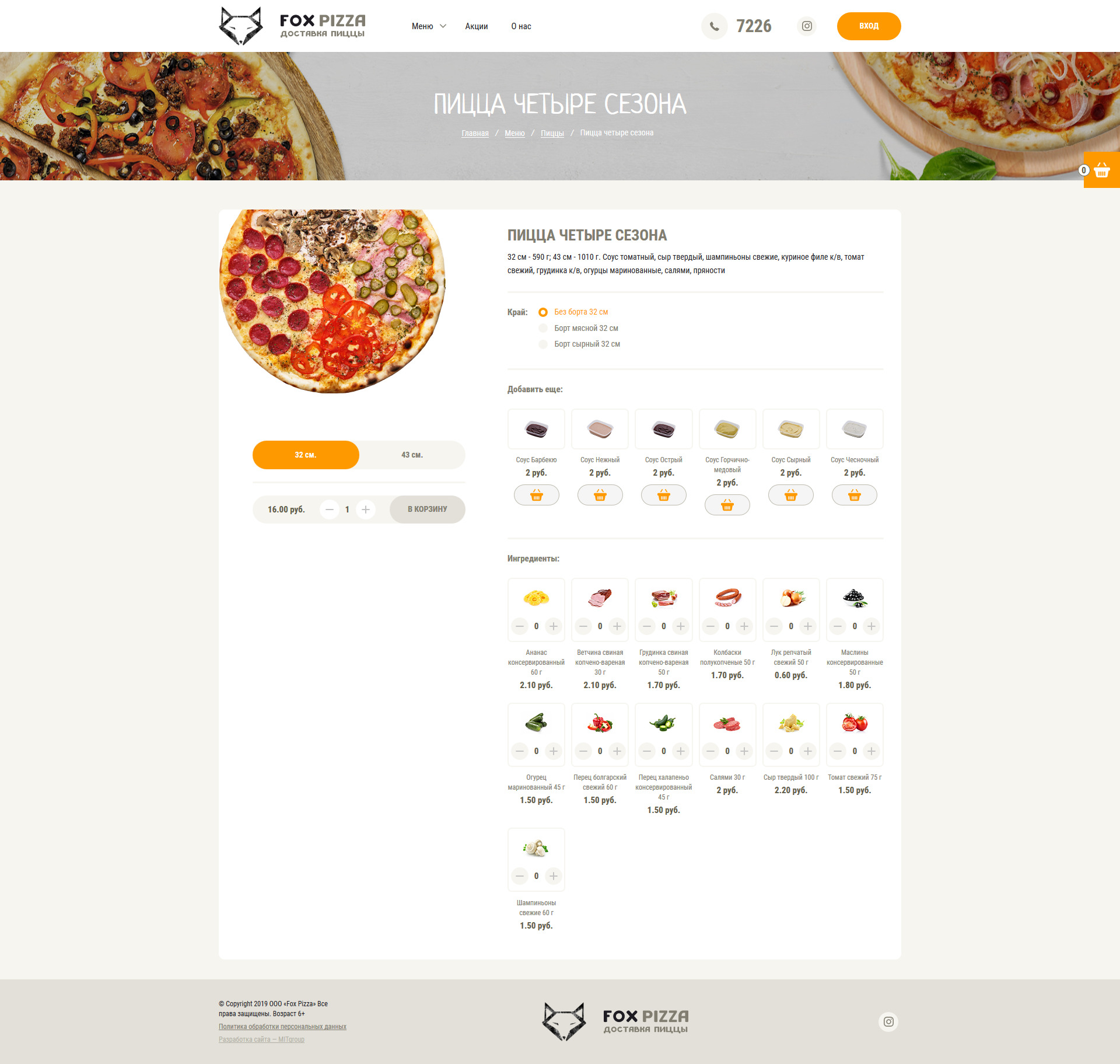 На сайте "Foxpizza" применен современный адаптивный дизайн, интерфейс сайта понятен любому пользователю.