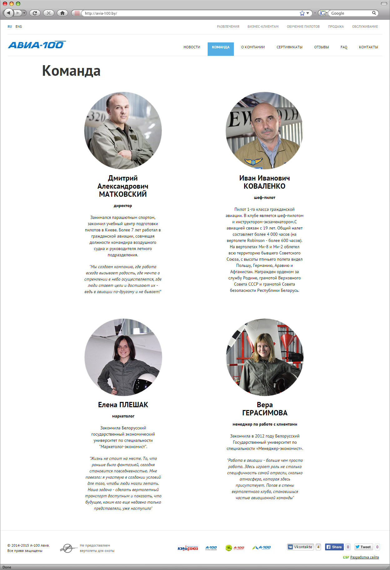 Сайт Первого профессионального вертолетного Клуба avia-100.by