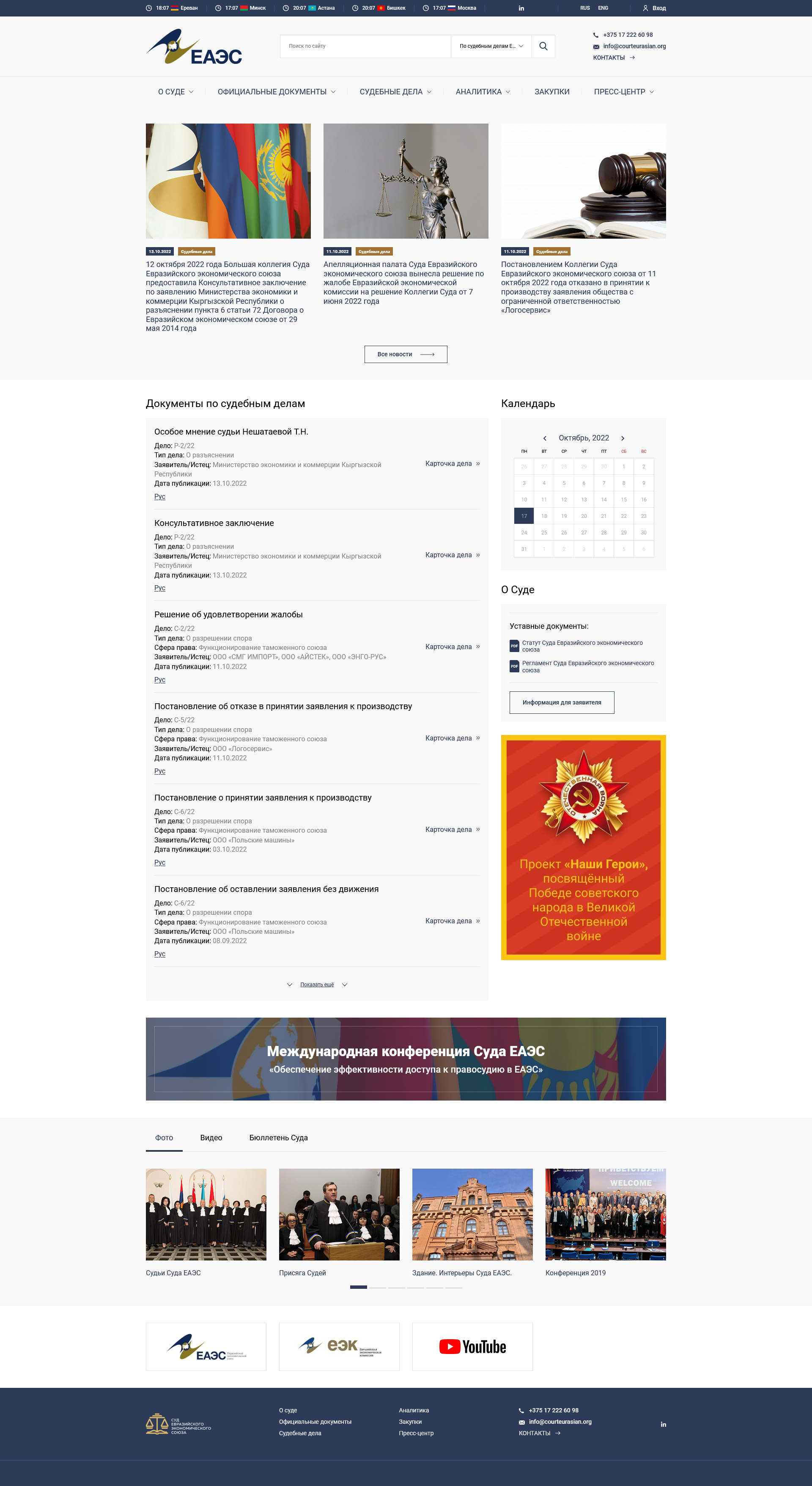 Сайт является актуальным и рабочим на сегодняшний день. Все вкладки и страницы заполнены подробной информацией о деятельности Суда. Любой Пользователь благодаря сайту может узнать много полезной информации о суде, ознакомиться с делами, задать интересующие вопросы.