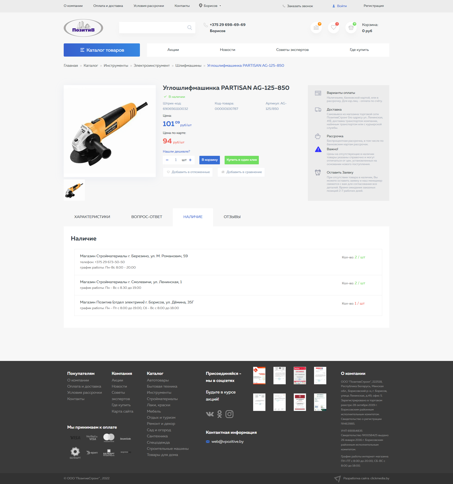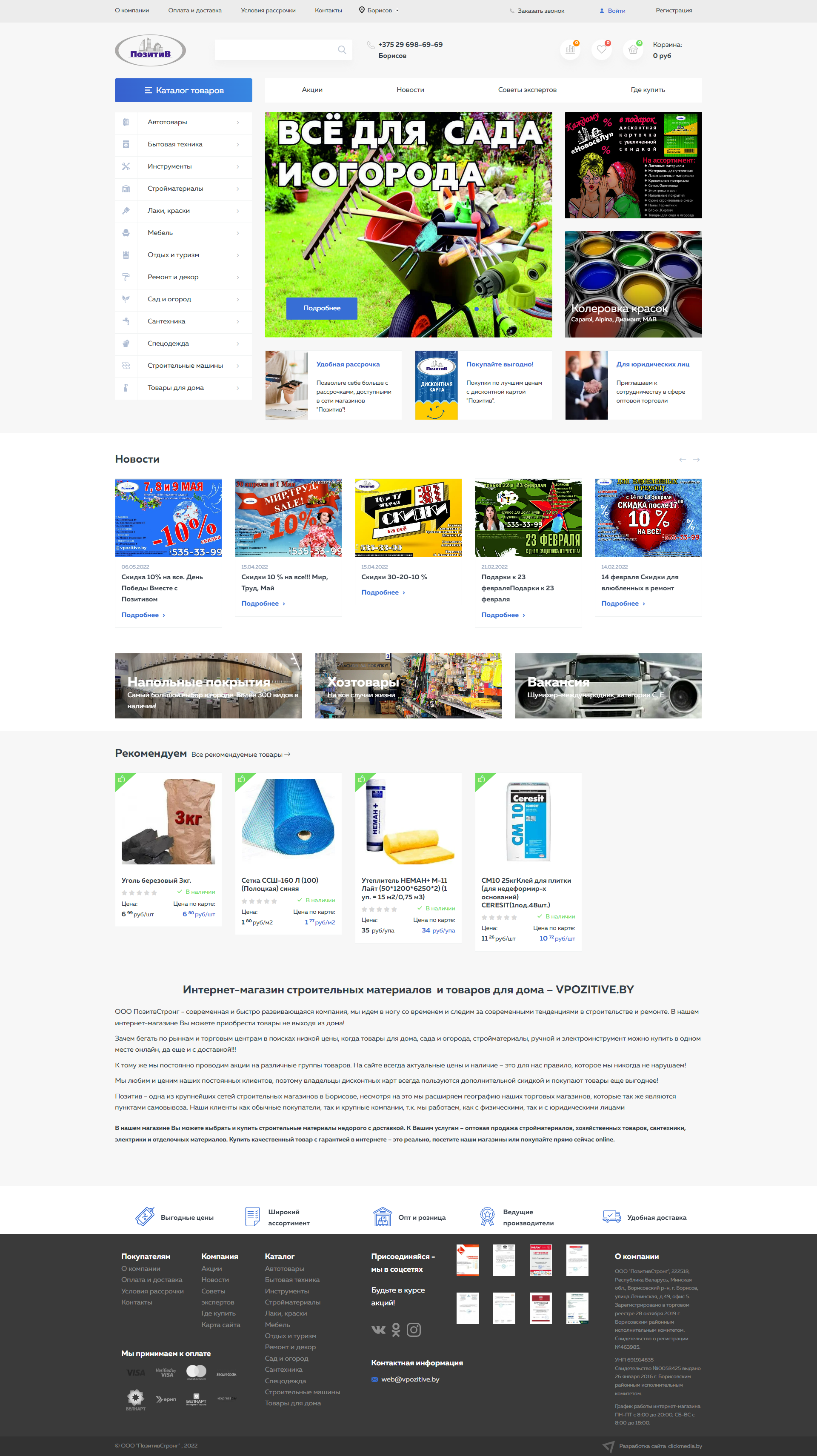 - Развернутый каталог продукции с множеством категорий и товаров.