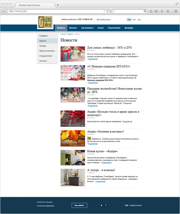 Сайт ведущей белорусской фабрики «ГеосИдеал»