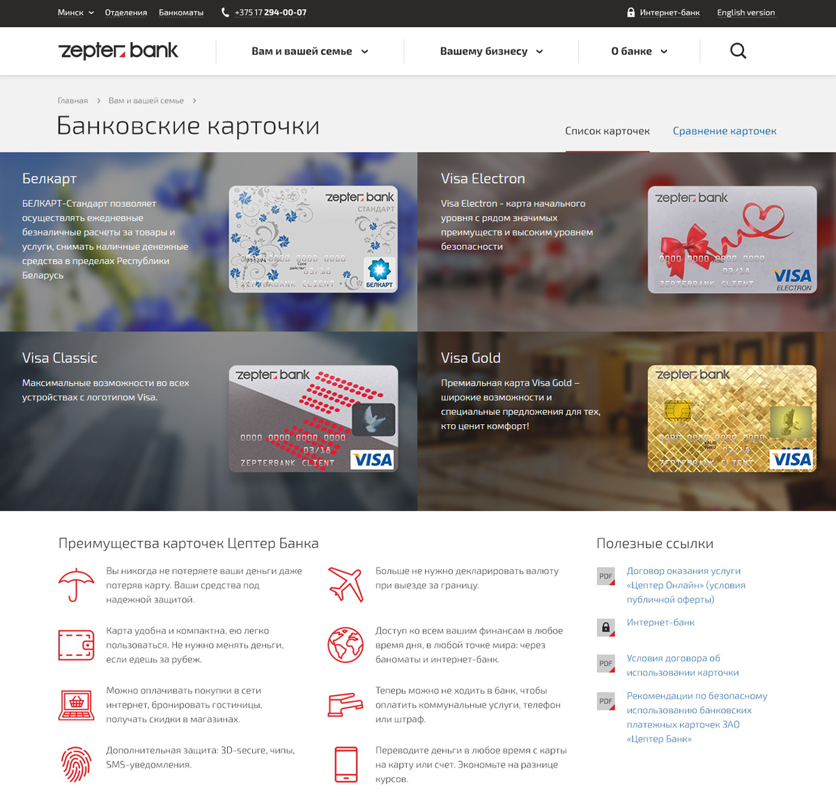 Со стороны может показаться, что все банки друг на друга похожи. Однако у каждого из них есть свои особенности и тонкости работы. Поэтому приступая к разработке сайта для Цептер Банка, мы традиционно начали с изучения его старого сайта, а также существующих продуктов и услуг.