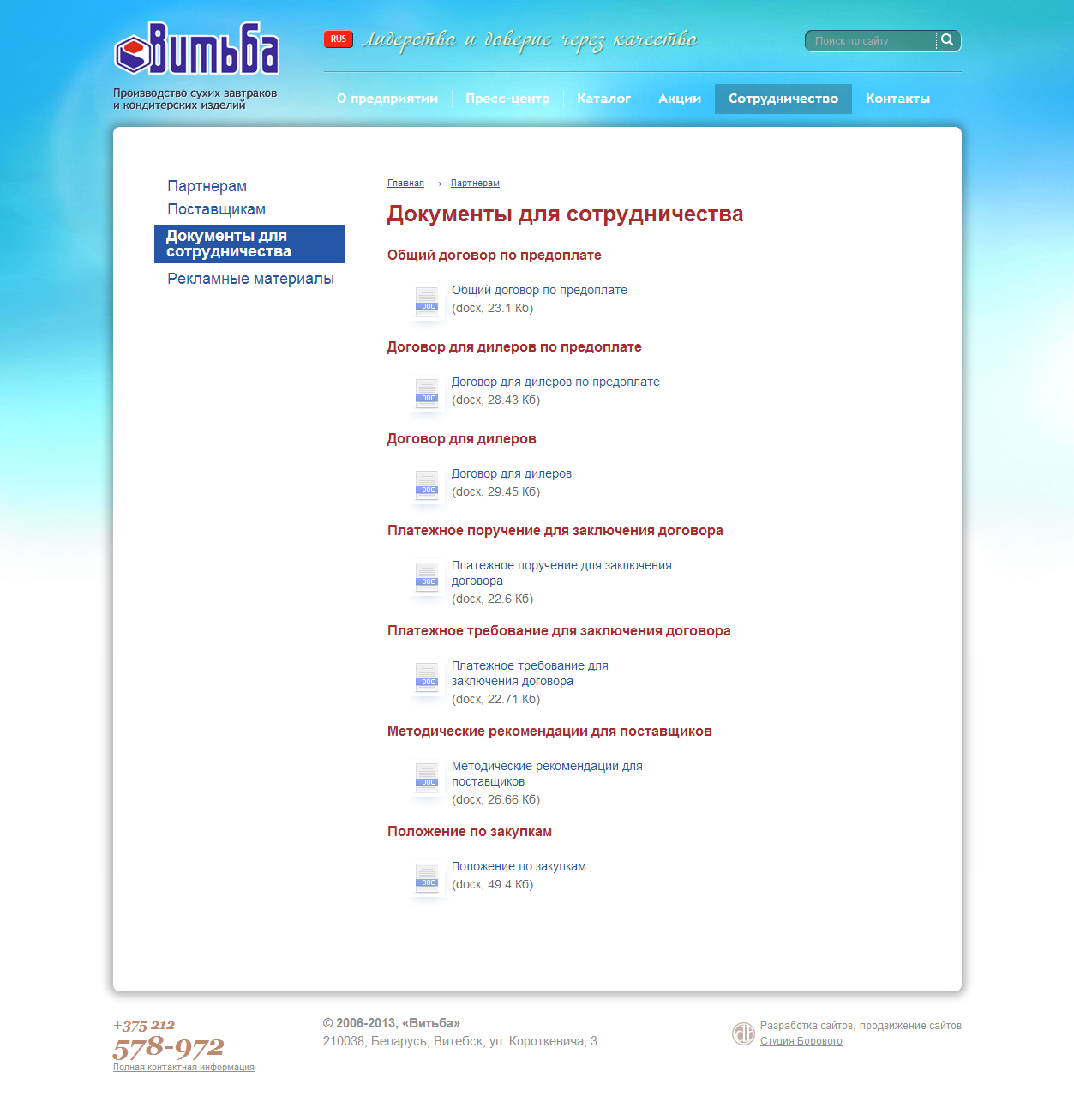 — Раздел сайта «Сотрудничество» содержит информацию об условиях сотрудничества и предлагает здесь же скачать все необходимые документы.