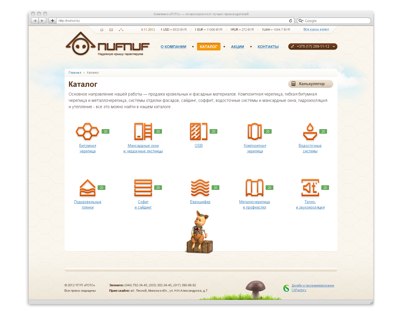 - реализован калькулятор для расчет стоимости материала, в котором пользователь может выбрать интересующую его категорию товара, товар/бренд и площадь в квадратных метрах