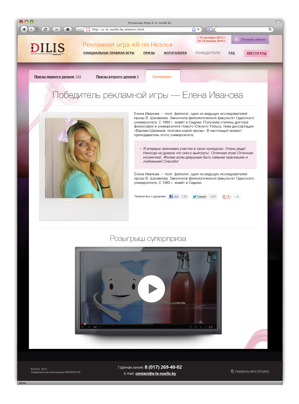 - предоставить пользователям полную информацию о правилах проведения рекламной игры, призах, список участников и победителей